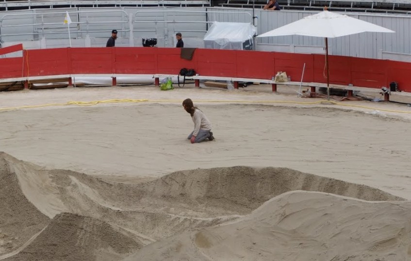 Pierre Huyghe, Colony Collapse. It’s hard to see, but the man in the middle has a colony of bees on his face and head. As, you might expect, he’s not Pierre Huyghe. Suffering for one’s art is all very well, but why bother if someone else will do it for you? The potential sufferer was actually called Marlon Middek and the bees were the responsibility of beekeeper Danny Jöckel.