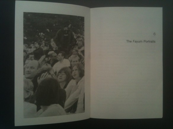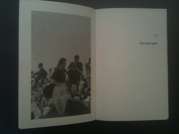 The Berger book contains eight details culled from Marlow’s photograph, scattered as ‘frontispieces’ to various essays in the text. Again, the cuts are made with a kind of numbness that slightly beggars belief. I hope – I really hope – that neither Marlow nor Berger made them. But I can’t believe that either could have done. Not all essays get one. There seems very little direct reference when they do. None carries a caption; you have to search in the boring ‘legal details’ at the front of the book for a tiny credit that covers them all. None necessarily refers to – let alone illustrates – the text it accompanies. This is “photography after Sebald” with a vengeance. The pictures, made not by a photographer but by a designer using him only as a supply of raw material, are allusive, but only ponderously so. A very largely white crowd, obviously waiting, with odd episodes of blurred movement or interesting collisions if you look closely. Opposite a page entitled Michelangelo is a blurred figure more obviously connected to Francis Bacon than anything Michelangelo ever did. A dullard in a black tee-shirt videos him. The faces, and sometimes the bodies, are turned in various directions. This is the kind of incidental interest you get if you look with attention at any busy photograph, perhaps a little more closely than usual, or perhaps with a lens.