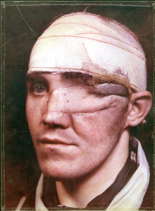 Percy Hennell Published May 26, 2013 at 500 × 679 in Harlequin Without His Mask Percy Hennell, Wartimne injury of the left eye which has been removed and replaced with a flap of skin taken from the scalp or forehead which is bandaged, n.d.