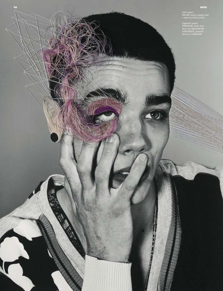 Miles wears T-shirt and Sweater by Galliano. From Dazed and Confused, 2011.