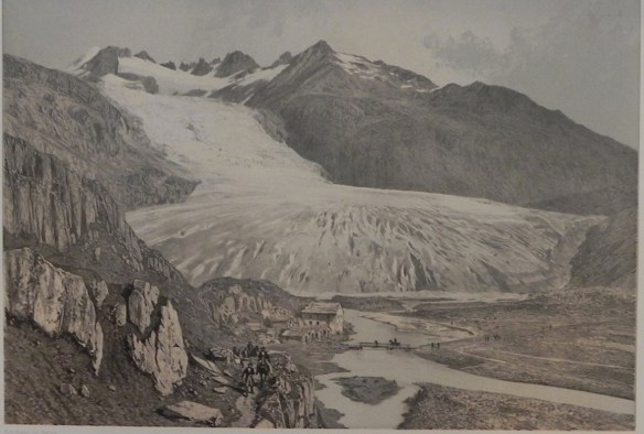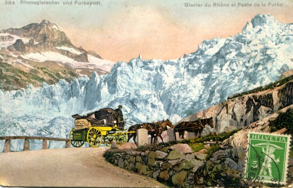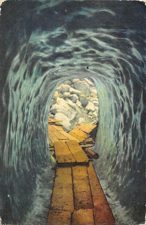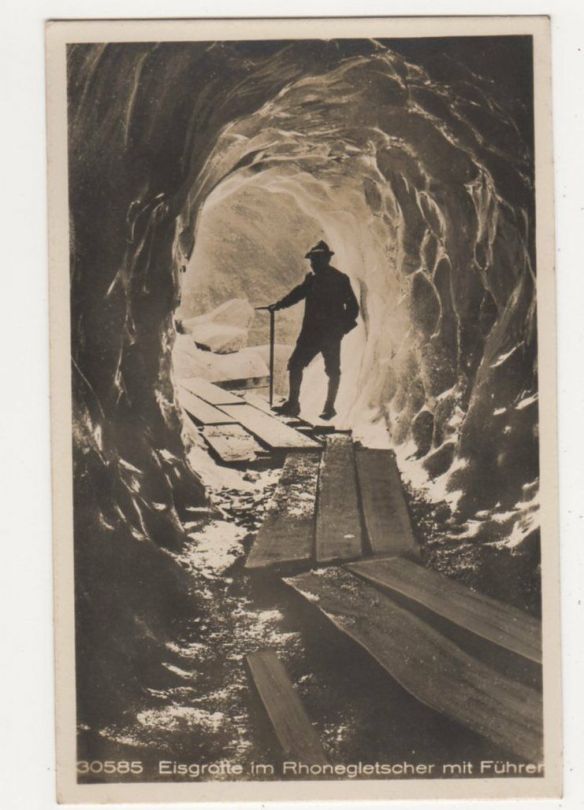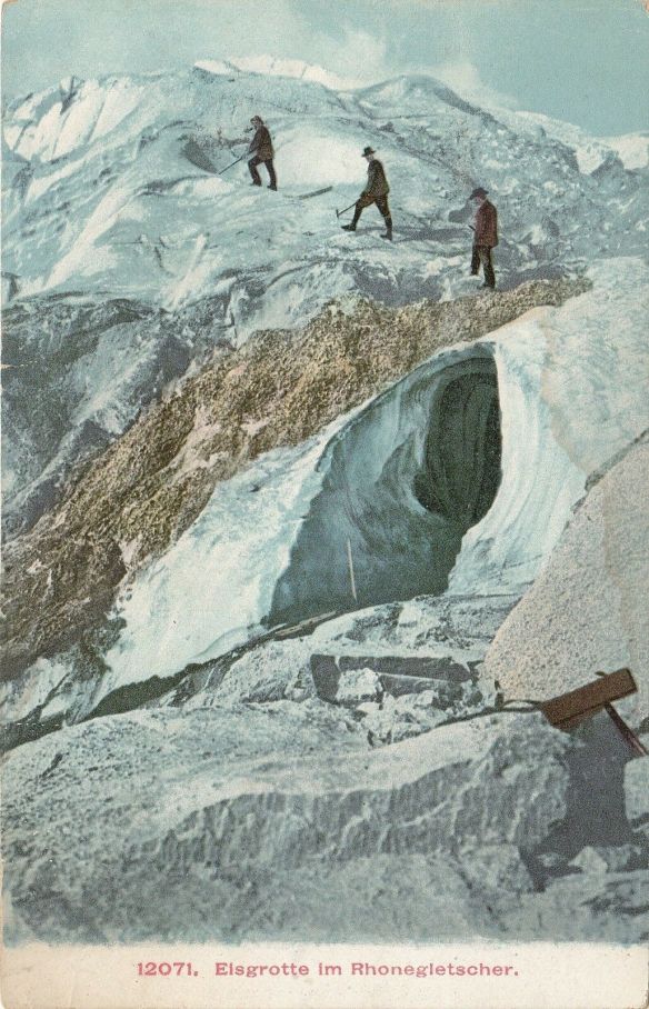 Some of the many hundreds of postcards of the Rhône Glacier easily found online. It was frightening and strange and grandiose, but easily accessible and so became a major tourist draw. This one’s from 1900.