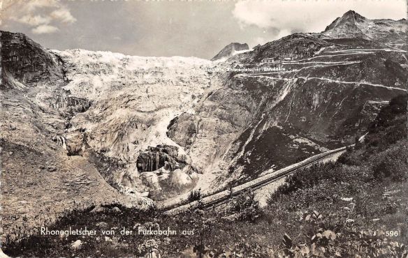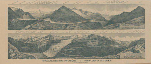 Panorama of the Furka by Armbruster Reinhard from 1890. The Rhône Glacier, as it used to, reaches right down to the valley floor.