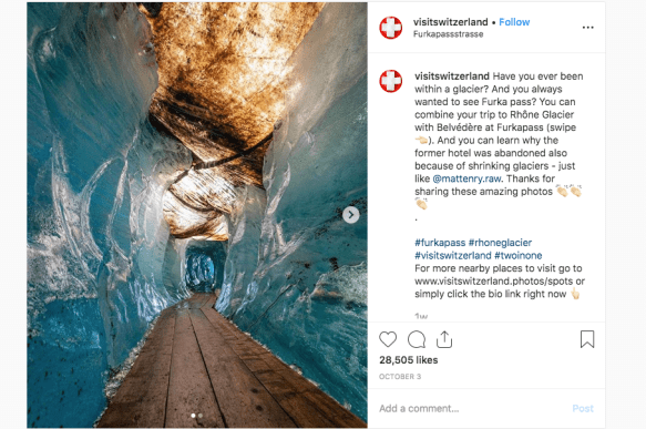 Another of the attractions has long been a cave dug out of the ice to allow visitors to walk actually within the glacier. The tradition was started by Seiler as an unashamed tourist draw and continued by his successors. The idea is that the ice which looks so grey and rocky – grubby is the word – from outside refracts light in a special way and that for a few tens of metres you can walk in an ethereally cool blue grotto – an experience which still today raises oohs and aahs on Instagram. The glacier moves, so the grotto distorts through the season and has to be dug afresh every year. But recently the retreat of the ice has been so fast that special measures have had to be taken; the Carlen family, successors to the Seilers, who own a gift shop and in effect own a bit of the glacier, felt that their asset was simply melting away. The grotto which had been tens of feet below the surface of the ice, was now sometimes not even covered: more of a crevasse than a cave. They started ten or so years ago to protect their bit of ice by covering it with thick canvas lined with insulating materials, desperately trying to make a season’s attraction last a season. I repeat it, because it’s such an extraordinary idea. They tried, with all the help that money and science could give them, to keep a glacier cool. Nobody much has ever felt the need to do that before. Now we all fervently hope for exactly that.