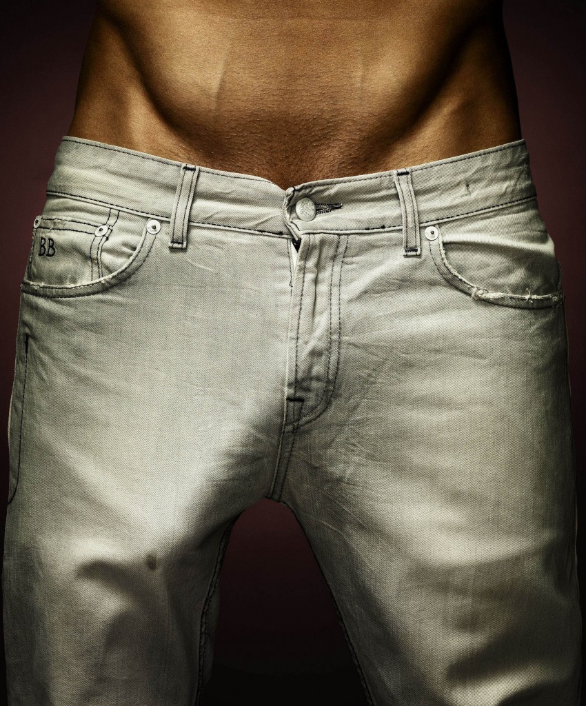 Olaf did make those pictures and they do represent something that struck deep. You can see many of them in these pages [again, I’m referring to the book, Erwin Olaf, volume II]. But before that he had also made a frankly bawdy series of close views of large cocks seen straining and bulging through jeans so tight they can barely restrain them. Those were pretty close to porn; but they were also striking for their wit, a certain joie de vivre, for unabashed hearty pleasure in things bodily. Olaf has worked very successfully with dance groups, often portraying them nude. (He has, though, had less luck with footballers. I remember a series in which Olaf managed to make the Dutch goalkeeper Edwin van der Sar, a great athlete but an earthy one the very opposite of showy, appear as camp as a row of boy scouts.)