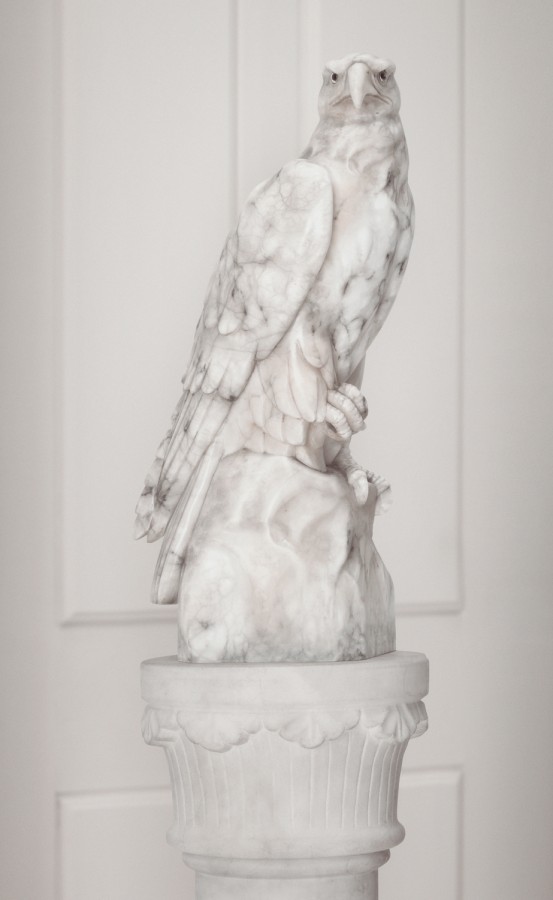 Some time ago, he started mining his own work as well as that of others. The 2009 series Dusk, for example, was inspired in part by the pioneering Hampton Institute Album of 1899 by the wonderful American woman photographer Frances Benjamin Johnston. But when Olaf went on to make the companion series Dawn (we see some of each series here), he looked at Blacks, his own series of some twenty years before, and reversed the tonalities to a pale washed out whiteness that was wholly new. Blacks had the gorgeous rococo complexity of Grinling Gibbons; in Dawn that has become an echo, visible in a carved marble eagle, an alabaster ewer, or an ornate chair back.