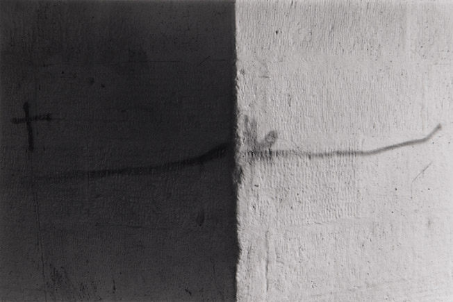 The caption suggests that the squiggles made by Chim’s subject are meaningless. But we remember enough to cast doubt: one of the more famous of Jackson’s Pollock’s paintings comes from that same year. It was called No.5, 1948 and was for a time the most expensive painting ever sold. Not all squiggles are deemed to be meaningless. The next page is explicit: in one from the series of their great collaboration, Gjon Mili catches Picasso drawing with light at Vallauris in 1949, a perfect minotaur in his own manner. Squiggles tamed. We turn a page, and Meatyard invites us look at two squiggles, not one. A twisted wire on the wall (familiar to later viewers as a motif that recurs often to Roger Ballen) looks vaguely rude, but is impromptu, informal, ‘found’. Above it, a window grille (wrought iron or cast iron, I’m hazy on how to tell them apart) gives a kind of Moorish delight in the tight restraint applied to its own curlicues. In the next picture, the little window has been brought down to eye level and the squiggles have loosened to little more than marks. Then Cartier-Bresson still has one figure looking at the wall with his back to us, but his windows are aligned like musical notation, a kind of hymn above those children nearer the camera. This is a soaring sequence of pictures, taking small pictoral gestures and twisting them like a fugue through each next picture. Greenberg and his editors are showing us how order can be given to the seemingly endless happenstance of photography. It’s a wonderful demonstration, and one paralleled many times in the kinds of books I’m alluding to.