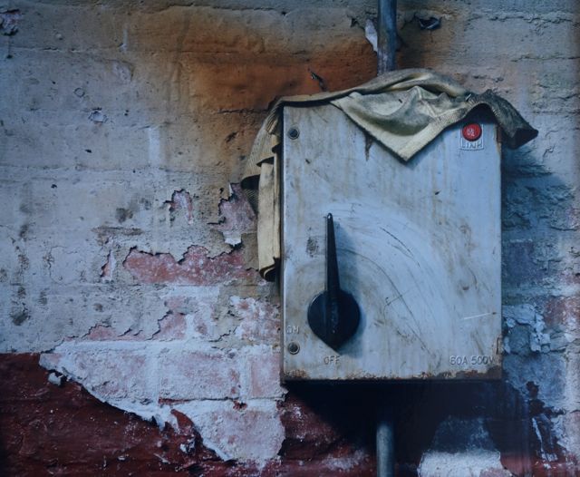The exhibition was called Mysterious Coincidences and was at the Photographer’s Gallery, London from the 4th December 1987 to 16th January 1988. The exhibition was curated by Susan Beardmore (now Susan Daniel McElroy) and Alexandra Noble. My work was called ‘Images for Hugh’ which was dedicated to a close friend who died a young man in his twenties. Hugh and I worked together in an engineering factory in Cumnock in Ayrshire, Scotland. I left engineering to go to art school in Dundee but I returned every now and then to see old work mates. On my first visit back which was about two months after Hugh’s death they told me that Hugh’s milk bottle with his oily fingerprints on it was still on the shelf where he left it, no one would touch it or remove it. That image remained with me and when I was studying documentary photography at Newport College I spent a lot of time photographing with 5x4inch cameras in the dock area particularly the engineering sheds. Similar traces abounded throughout these sheds, as had been where Hugh and I worked. This subject matter was normally always presented in black and white and making it a colour work seemed to be quite innovative and unusual at this time as I was included in this big show with big names in British photography while I was still a student at Newport. “