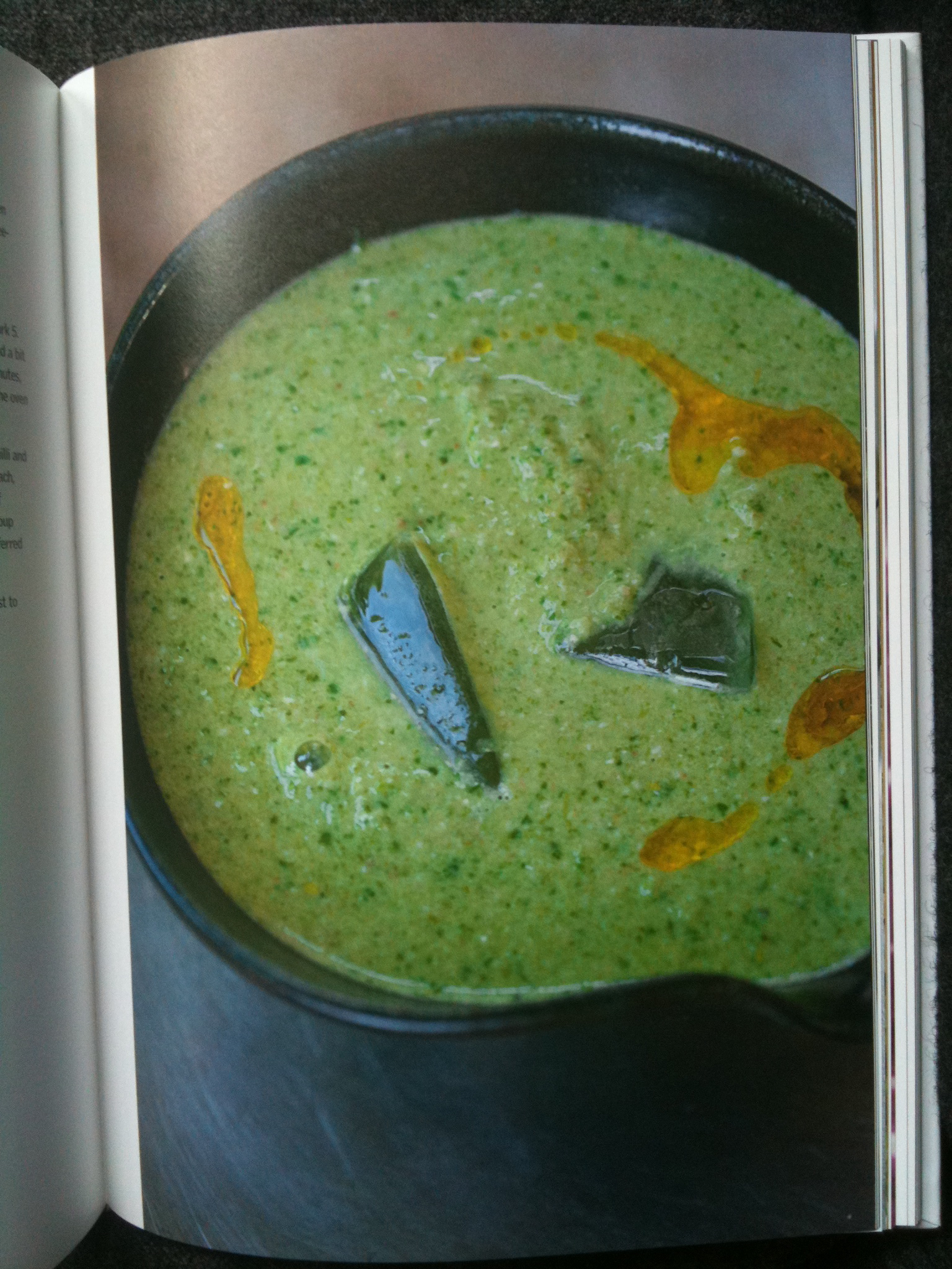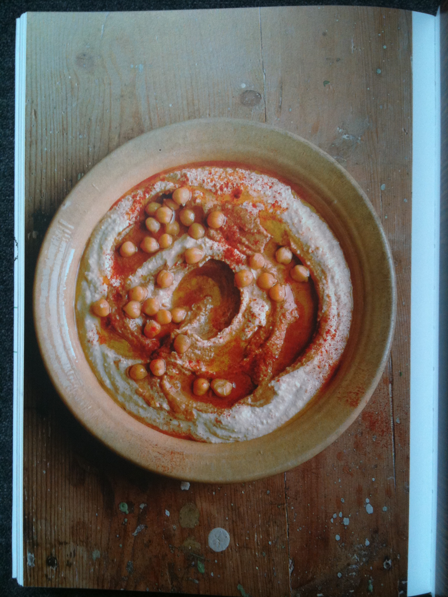 These spots are important. They speak of energetic creativity, of people so concerned with the eternal verities of ingredients each more achingly authentic than the next that a little errant paint is neither here nor there. The vine leaf, herb and yogurt pie is shown on a lightly chipped plate itself on a surface of lightly chipped paint. There are carefully indicative minor spillages in many pictures (designed to convey the artistic and creative nature of a process not entirely controllable to the last degree). Utensils have a degree of visible wear. This is photography by allusion. Comfortable use is to be applauded; shining newness is just ever so slightly…nouveau.